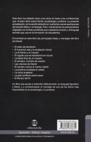 Este libro fue editado hace unos años en base a las conferencias que el autor dictó sobre Daniel, escatología y profecía. La presente actualización, se ha escrito teniendo en cuenta las nuevas aportaciones del estudio bíblico, pero manteniendo la frescura literaria que caracteriza al autor y el lenguaje sencillo que se usa en la formación de estudiantes. Un libro que ayuda a entender, bíblicamente, su lenguaje figurativo y literal, y a contextualizar el mensaje de uno de los libros más importantes en la escatología y la profecía.