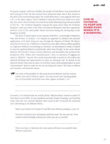 12 weeks of personal interactive study for five days a weekViewer guide for use with the DVD teaching sessionsColor study map of the Middle East during the time of Daniel