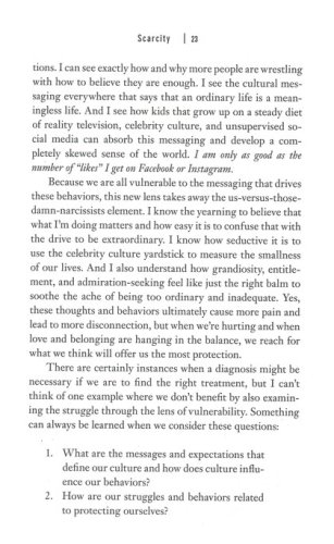 Daring Greatly is not about winning or losing. It’s about courage. In a world where "never enough" dominates and feeling afraid has become second nature, vulnerability is subversive. Uncomfortable. It’s even a little dangerous at times. And, without question, putting ourselves out there means there’s a far greater risk of getting criticized or feeling hurt. But when we step back and examine our lives, we will find that nothing is as uncomfortable, dangerous, and hurtful as standing on the outside of our lives looking in and wondering what it would be like if we had the courage to step into the arena—whether it’s a new relationship, an important meeting, the creative process, or a difficult family conversation. Daring Greatly is a practice and a powerful new vision for letting ourselves be seen.