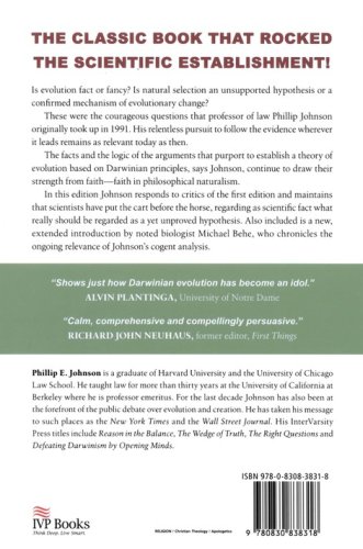 Is evolution fact or fancy? Is natural selection an unsupported hypothesis or a confirmed mechanism of evolutionary change? These were the courageous questions that professor of law Phillip Johnson originally took up in 1991. His relentless pursuit to follow the evidence wherever it leads remains as relevant today as then. The facts and the logic of the arguments that purport to establish a theory of evolution based on Darwinian principles, says Johnson, continue to draw their strength from faith–faith in philosophical naturalism. In this edition Johnson responds to critics of the first edition and maintains that scientists have put the cart before the horse, regarding as scientific fact what really should be regarded as a yet unproved hypothesis. Also included is a new, extended introduction by noted biologist Michael Behe, who chronicles the ongoing relevance of Johnson's cogent analysis.