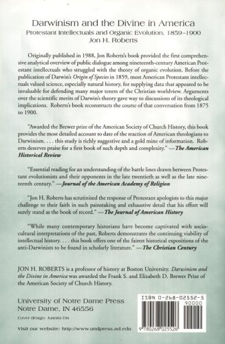 As Darwinian evolution filtered into American society in the late 1800s, denominations and people of faith were blindsided with ideas foreign to most of them, and the need to deal with this issue provoked various reactions from those affected. While it resonated with some (either overlooking or embracing Origin's racist pretext), it became a struggle for others to put organic evolution into a proper biblical context. Tracing the strain of evolutionary thought through the last decades of the 19th century and showing how it contributed to the denigrating of theological thought in social discourse, Jon Roberts, a professor of history at Boston University, shows how this secular theory impacted the realm of Christianity by examining the thoughts and writings of Darwin's religious contemporaries.