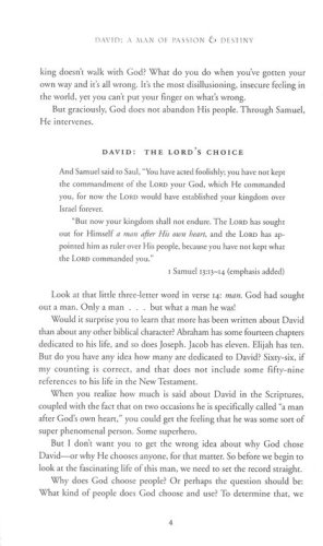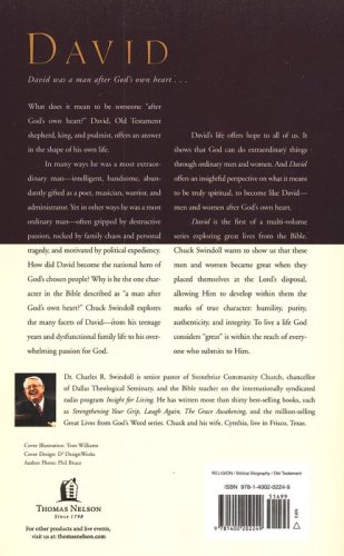 In many ways he was a most extraordinary man?intelligent, handsome, abundantly gifted as a poet, musician, warrior, and administrator. Yet in other ways he was a most ordinary man?often gripped by destructive passion, rocked by family chaos and personal tragedy, and motivated by political expediency. How did David become the national hero of God's chosen people? Why is he the one character in the Bible described as "a man after God's own heart?" Chuck Swindoll explores the many facets of David?from his teenage years and dysfunctional family life to his overwhelming passion for God.