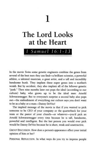 Who are your role models? The world desperately needs role models today—people who are fully human yet who exceed human expectations and point others toward God. David is such a role model. His struggles with sin are infamous, and the Psalms reveal his anguish and doubts. Yet he is also described as "a man after God's own heart"—the champion of Israel. In this twelve-session LifeGuide ® Bible Study, Jack Kuhatschek introduces you to David the servant and the leader, the sinner and the redeemed, the man and the instrument of God's creative purposes. As you explore David's tumultous story, you too will discover what it means to have a passionate heart for God. For over three decades LifeGuide Bible Studies have provided solid biblical content and raised thought-provoking questions—making for a one-of-a-kind Bible study experience for individuals and groups. This series has more than 130 titles on Old and New Testament books, character studies, and topical studies.