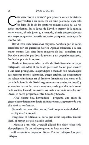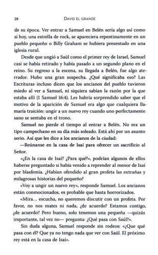 ¿Cuánto sabe usted realmente acerca de la vida del Rey David? Era un hombre de una lealtad inquebrantable, una gran fe y una visión nacional. Fue un poeta guiado por el Espíritu con intuiciones proféticas y mesiánicas que trascendieron milenios. Era un músico cuyas canciones de cuna podían calmar al alma atormentada por los demonios. Fue un líder político lo suficientemente fuerte como para forjar una nación a partir de una diversidad de tribus deleznables. Sin embargo, también era un adúltero, un asesino, un criminal mercenario y un padre muy odiado. Le causó sufrimiento a su pueblo por un acto de arrogancia. Ordenó la ejecución de sus enemigos en su lecho de muerte. Disfrutó muchas esposas y concubinas. Y, sobre todo, violó las leyes de Dios y las del hombre. En David el grande, Mark Rutland hace un análisis del único hombre que era según el corazón de Dios.