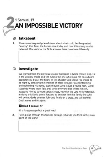 It's the stuff of legends. An unknown, unlikely-looking kid defiantly takes on the ultimate enemy weapon – an enormous, unconquered super-warrior. He sets out unprotected and alone, yet astonishingly, he slaughters the evil giant – the enemy is routed and David wins a complete victory for his people. It's easy to see why the story of David and Goliath is still so popular. We love David the hero, the shepherd boy who became king of Israel, chosen by God as a man 'after His own heart'. But what about David the despised 'worm', the hot-tempered bully, the weak father, the lustful playboy and the coldly-calculating murderer? Did God really know what He was doing when He chose David? This Good Book Guide on the life of David reveals the secret of David’s success and the reasons for his many failures. But it also uncovers the greater story of a better hero. In just six sessions, you will learn how this weak Israelite king points us to the ultimate king, Jesus — despised like the ‘worm’ of David’s psalm, yet finally winning the ultimate victory for His people over sin and death. Includes:Talkabout: discussion startersInvestigate: inductive study questionsExplore More: (optional) questions that connect the text with other parts of the BibleApply sectionsGetting Personal: opportunities for each memberPrayer: thanksgiving and requests based on the text studied.