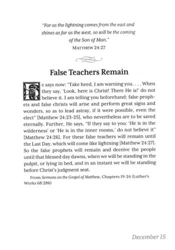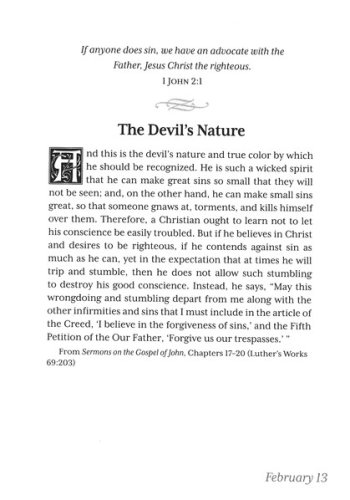 It is intended for the lay reader who is looking for brief but engaging devotions that are pertinent to the daily life of the Christian. Luther's writing is sound, biblically faithful, and helps to filter the distortion created by culture. His work has withstood the test of time and after 500 years continues to contribute to the understanding of and practice of the Christian faith.