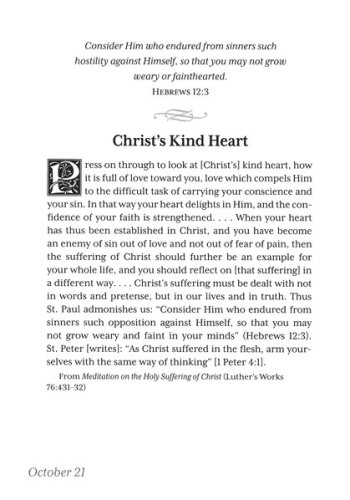 This collection of 365 daily devotions provides shorter readings that are representative of Luther's depth and breadth of writings.