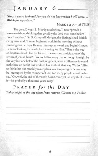 Start each day with a fresh commitment of faith in Jesus Christ! This classic-recently revised to feature a beautiful new cover and blank pages for journaling-offers 366 days' worth of selections from God's Word and short Scriptural reflections from Billy Graham.