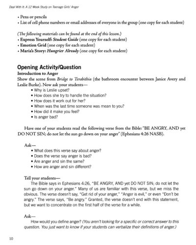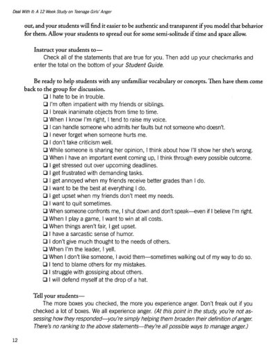 Anger is a regular part of every middle school girl’s world. Often times, this anger can appear as open aggression where girls bully one another, or they can unhealthily suppress their anger. But there are godly and appropriate ways students can respond to situations that make them angry. Deal With It gives youth leaders the tools to help middle school girls deal with their anger. Through activities that include reading and responding to stories about Maria, a fictional teen, students will learn to recognize their anger and find healthy ways to express their emotions.