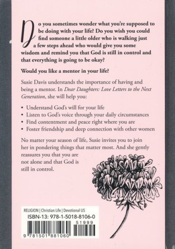 With Dear Daughters, Susie Davis creates a bridge between two groups of women–dear daughters and spiritual mamas. Dear daughters are young women in search of spiritual guidance and spiritual mamas are women just a little further down the road with age-old wisdom to share. Each group has valuable insight for the other and the hope is that the reader will invite someone to come alongside them, pore over the included letters together, and pass along wisdom and advice that will make both lives more beautiful, wherever they are in their God story. This book, ideal for a gift, is a casebound hardcover with ribbon.