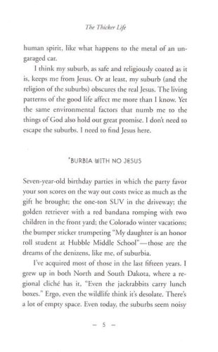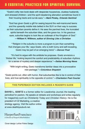 A great number of seekers find themselves in the seemingly unreal world of the suburbs. They read spirituality books but find themselves in carpools and coaching soccer, not in monasteries. Dave Goetz, a former pastor, shows that the suburbs are a real world, but a spiritually corrosive one. The land of SUVs and soccer leagues can truly be toxic to the soul. Suburbanites need to understand how the environment affects them and what spiritual disciplines are needed for their faith to survive and thrive. Goetz identifies eight toxins in the suburban life, such as hyper–competition and the "transactional" friendship, and suggests eight corresponding disciplines to keep the spiritual life authentic. Goetz weaves sociology studies, his own experiences, current events, wisdom of the spiritual masters, and a little humor to equip spiritual suburbanites for how to relate to God amidst Starbucks, strip–malls, and perfect lawns.