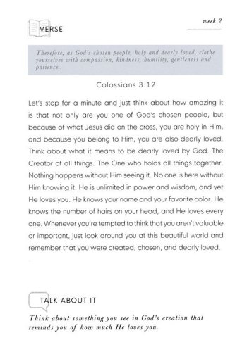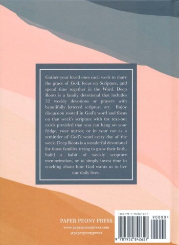 Deep Roots has 52 weekly devotions with scripture, beautifully illustrated bible verses, discussion questions for each devotion as well as guided prayers. It also includes tear out cards with scripture to place around your home, in your car or at work and school to memorize key verses.
