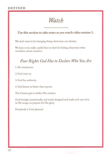 Defined Bible Study Book includes content for eight sessions, personal study between group sessions, applicable Scripture, “How to Use This Study,” tips for leading a group, and a leader guide.