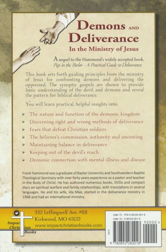 A sequel to the Hammond's widely accepted book, Pigs in the Parlor – A Practical Guide to Deliverance.This book sets forth guiding principles from the ministry of Jesus for confronting demons and delivering the oppressed. The synoptic gospels are shown to provide basic understanding of the devil and demons and reveal the pattern for biblical deliverance.You will learn practical, helpful insights into: The nature and function of the demonic kingdomDiscerning right and wrong methods of deliveranceFears that defeat Christian soldiersThe believer's commission, authority and anointingMaintaining balance in deliveranceKeeping out of the devil's reachDemonic connection with mental illness and disease, and more