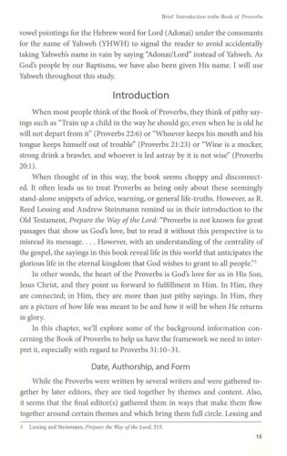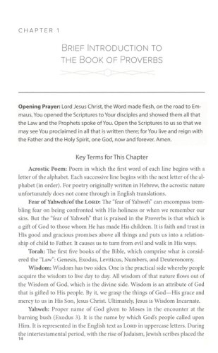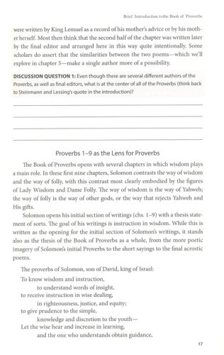 This book can be used individually at your own pace or as a group study. Each chapter has the following components: Opening Prayer, Key Terms, Introduction, Date/Authorship/Form, Passage Teachings, and a Conclusion. Questions are interspersed throughout with an Answer Guide in the back of the book with suggested answers.
