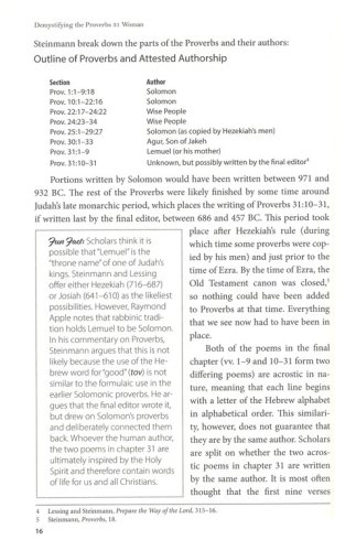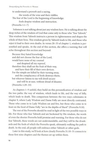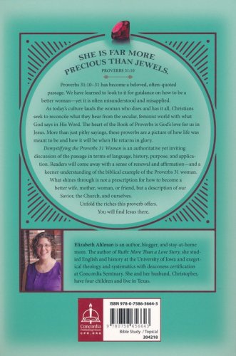 In the present day, Proverbs 31:10–31 has become a beloved but also misunderstood Scripture passage. Many women look to it for guidance on how to be a better woman, but it must be contextualized in order to be understood and appreciated. Demystifying the Proverbs 31 Woman discusses the passage in terms of language, history, purpose, and application. What shines through is not a prescription for how to become a better wife, mother, woman, or friend, but a description of our Savior, the Church, and ourselves.