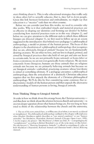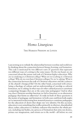 Malls, stadiums, and universities are actually liturgical structures that influence and shape our thoughts and affections. Humans–as Augustine noted–are "desiring agents," full of longings and passions; in brief, we are what we love.