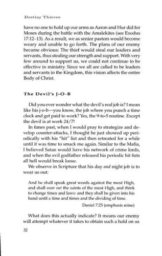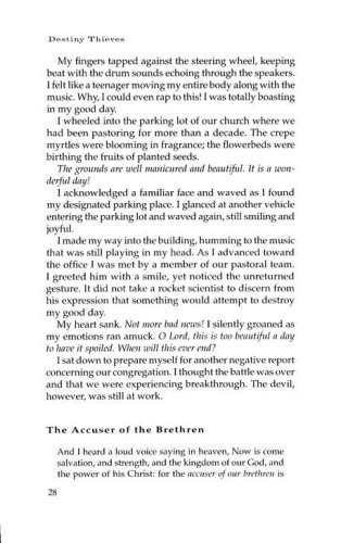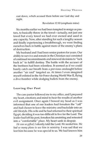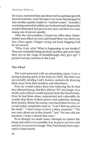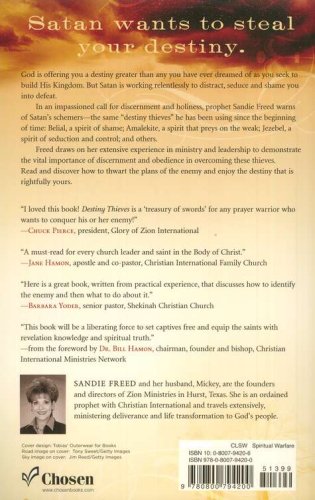 In Destiny Thieves, prophetically gifted Sandie Freed shares the story of her own struggle, as well as many biblical accounts of the struggles of God's people, with the demonically inspired obstacles that stand in the way of breakthrough. This liberating book shows readers the tactics Satan uses against believers, identifies particular seducing spirits, and charges believers with a new level of faith to go forward and claim the victorious life God has planned for them.