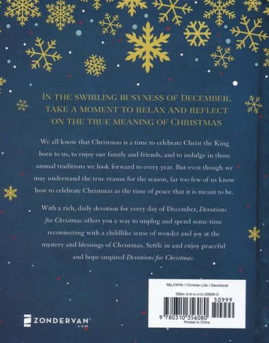 With a rich, daily devotion for every day of December, Devotions for Christmas offers you a way to unplug and spend some time reconnecting with a childlike sense of wonder and joy at the mystery and blessings of Christmas. Settle in and enjoy peaceful and hope-inspired Devotions for Christmas.