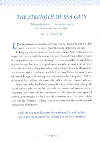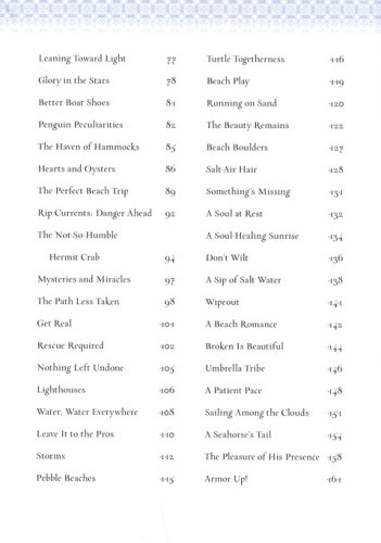 100 devotions focused on the beachGorgeous photographyLife parallels with elements of the shoreMessages of hope, comfort, strength, and rest