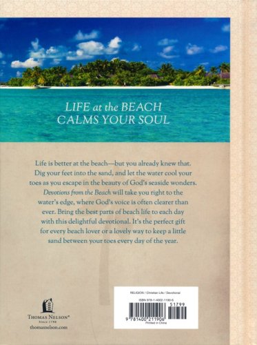 This beautiful book gives you a front-row seat to God's majestic creation. So breathe deeply and open your heart and soul to the One who shaped it all. Devotions from the Beach is the perfect gift for every beach lover, women who appreciate gentle reminders of days at the beach and the call of God's love, and anyone who finds peace standing beside the ocean.
