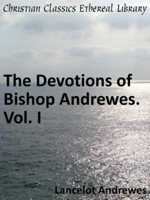 Bishop Andrewes was one of the foremost Biblical scholars of his time. He also was one of the translators of the King James Version of the Bible and was King James' favorite preacher. The Devotions of Bishop Andrewes was originally entitled, Preces Privatae, which translates to Private Devotions. They are the private, intimate prayers of a very public and pious man. Andrewes was not motivated to write these devotions out of a desire to publish them. These devotions were written from Andrewes' heart out of love and devotion for our Lord. Andrewes is said to have spent five hours in prayer every day. Included in the collection are devotions for the morning and evening that he employed during his time alone with God. -Andrew Hanson, CCEL Intern