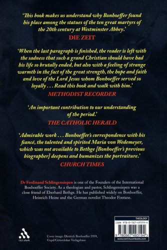 Sixty years after Bonhoeffer's death and forty years after the publication of Eberhard Bethge's ground breaking biography, Ferdinand Schlingensiepen offers a definitive new book on Bonhoeffer, for a new generation of readers. Schlingensiepen takes into account documents that have only been made accessible during the last few years – such as the letters between Bonhoeffer and his fiancée Maria von Wedemeyer. Schlingensiepen's careful narrative brings to life the historical events, as well as displaying the theological development of one of the most creative thinkers of the 20th century, who was to become one of its most tragic martyrs.