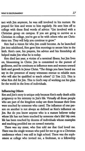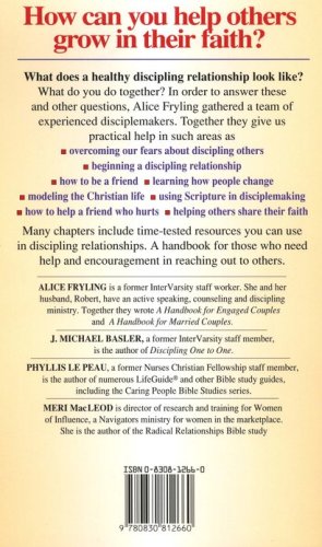 How can you help others grow in their faith? What does a healthy discipling relationship look like? What do you do together? In order to answer these and other questions, Alice Fryling gathered a team of experienced disciplemakers. Together they give us practical help in such areas as overcoming our fears about discipling others, beginning a discipling relationship, how to be a friend, learning how people change, modeling the Christian life, using Scripture in disciplemaking, how to help a friend who hurts, and helping others share their faith. Many chapters include time-tested resources you can use in discipling relationships. A handbook for those who need help and encouragement in reaching out to others.