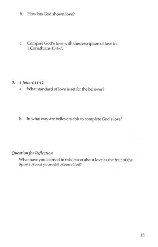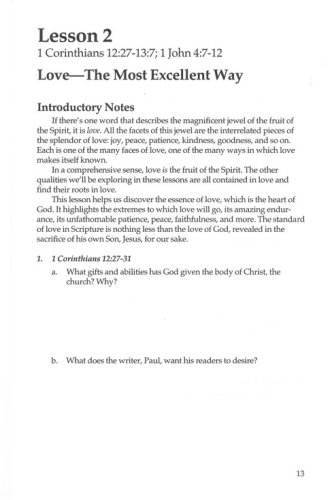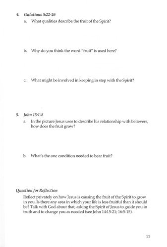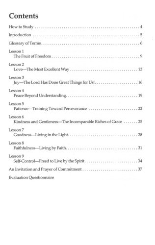 Discover the Fruit of the Spirit is a nine-lesson study that focuses on Galatians 5:22-23 and a variety of related Bible passages. Discover how the fruit of the spirit can grow in you so that you can live the fruitful, free life God intends for all of us. This is intended for small group Bible study but can be used for personal study as well.