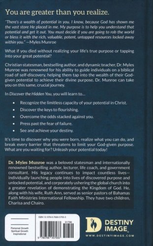 Christian statesman, bestselling author, and dynamic teacher, Dr. Myles Munroe was renowned for His ability to guide individuals on a biblical road of self-discovery, helping them tap into the wealth of their God-given potential to achieve their divine purpose. Dr. Munroe can take you on this same, crucial journey.