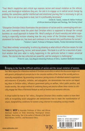 This book brings to the fore the difficult realities of racism and the sexual violation of women. Traci West argues for a liberative method of Christian social ethics in which the discussion begins not with generic philosophical concepts but in the concrete realities of the lives of the socially and economically marginalized.