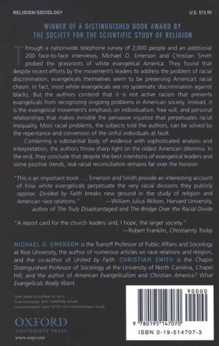 Combining a substantial body of evidence with sophisticated analysis and interpretation, the authors throw sharp light on the oldest American dilemma. In the end, they conclude that despite the best intentions of evangelical leaders and some positive trends, real racial reconciliation remains