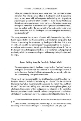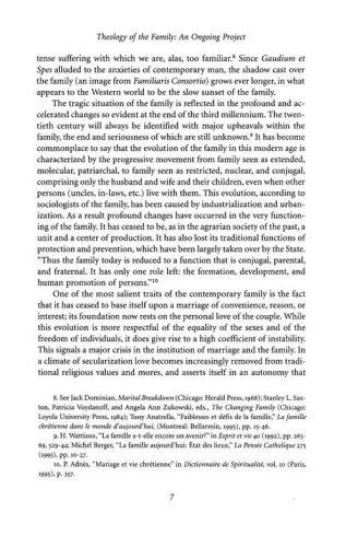 Marked by growing freedom and equality, today's families are also dogged by brokenness and loss of faith. And while the theology of marriage has developed remarkably under the impetus of the Second Vatican Council and Pope John Paul II, the theology of the family remains in its infancy, only beginning to meet the challenges of contemporary society.
