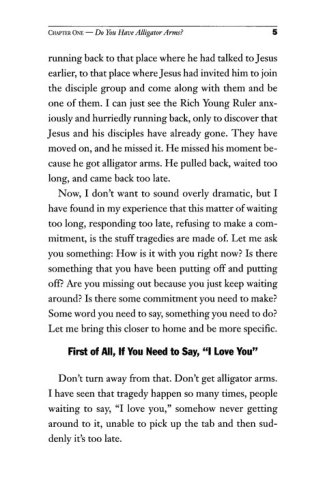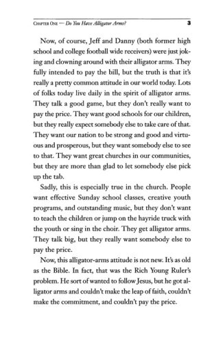 Popular author James W. Moore draws on an old football term to explore the ways people let their fear stand in the way of living life and loving God to the fullest. The term "alligator arms" refers to a would-be pass receiver who fails to stretch out full length to catch the ball, because he fears an impending tackle; he's more interested in protecting himself from the hard hit than catching the ball. This fearful attitude results in fumbled passes, in other words, lots of failure and frustration.