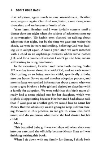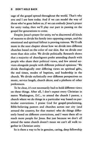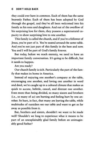 From his viewpoint in the capital of the United States, Pastor David Platt believes it's time for disillusioned, discouraged, and divided Christians to follow Jesus into a different future. In Don't Hold Back, Platt calls believers to take necessary risks and find the ultimate reward as we: