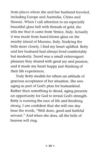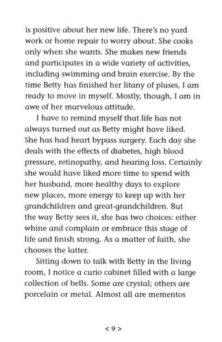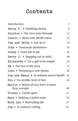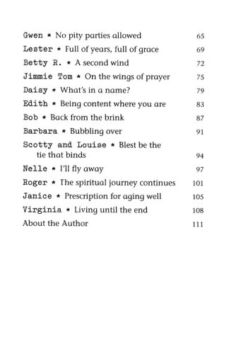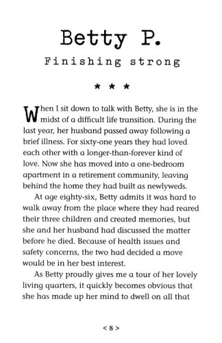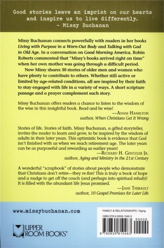 Time after time, mature adults pick up a book by Missy Buchanan and find themselves reading stores that reflect their lives and situations.  Each time the stores, poems and prayers move the reader through a myriad of thoughts and feelings ranging from questioning and pain to relief and joy.  It is this emotional connection that will draw in readers of Don't Write My Obituary Just Yet.Buchanan offers a glimpse into the lives of active, giving, and prayerful older adults who are seventy, eighty, ninety, and even one hundred years old.  Readers explore what it means to develop a deep attitude of gracious acceptance of the life God has given them.  And with each account, Buchanan relates what it means to live out a life that has a strong spiritual foundation.