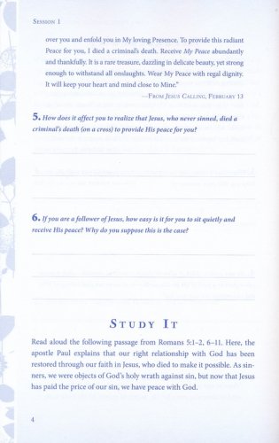 Each of the Jesus Calling Bible studies includes devotional readings from Jesus Calling, selected passages of Scripture for reflection, Bible study questions, and additional questions to help you apply the material. This study can be used for personal reflection and Bible study or in a small-group setting.