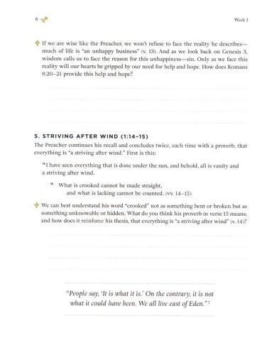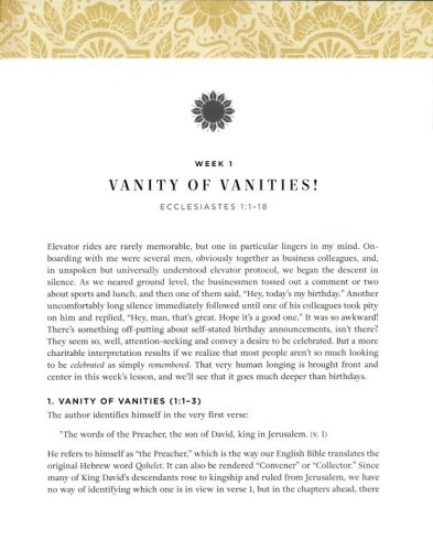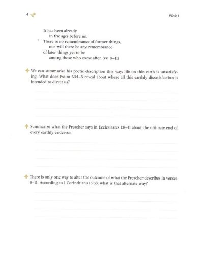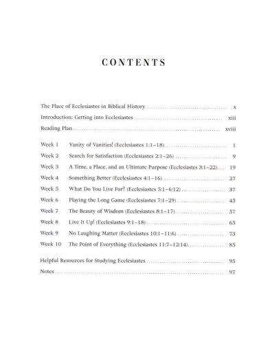 In this 10-week Bible study for women, Lydia Brownback explores the themes of Ecclesiastes—wisdom, the effects of sin, vanity, enjoyment, and death—to help readers live and follow the will of God for their lives.