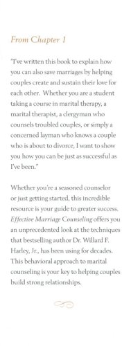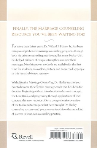 Beginning with an introduction to core concepts such as the Love Bank, and progressing through specific counseling steps, Effective Marriage Counseling offers readers a comprehensive overview of the tools and techniques that have brought Dr. Harley counseling success–and prepares readers to achieve the same kind of success in their own counseling practice. Pastors and counselors will welcome this incredible collection of proven techniques.