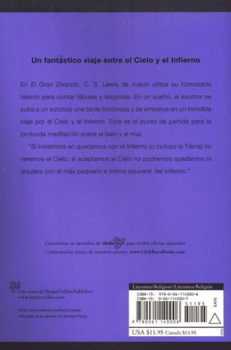 En El Gran Divorcio, C. S. Lewis de nuevo utiliza su formidable talento para contar fábulas y alegorías. En un sueño, el escritor se sube a un autobús una tarde lloviznosa y se embarca en un increíble viaje por el Cielo y el Infierno. Este es el punto de partida para la profunda meditación sobre el bien y el mal.