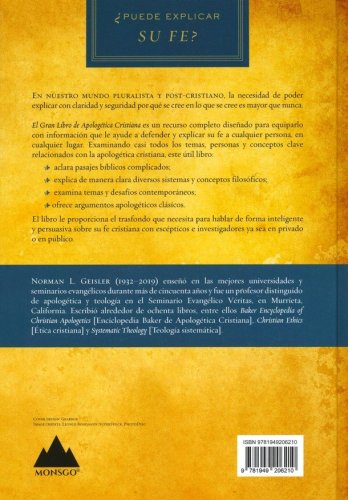 ¿Puedes explicar tu fe? En nuestro mundo pluralista y postcristiano, la necesidad de poder explicar con claridad y seguridad por qué se cree en lo que se cree es mayor que nunca. El Gran Libro de Apologética Cristiana es un recurso completo diseñado para equiparte con información que te ayude a defender y explicar tu fe a cualquier persona, en cualquier lugar. El libro te proporciona el trasfondo que necesitas para hablar de forma inteligente y persuasiva sobre tu fe cristiana con escépticos e investigadores ya sea en privado o en público.