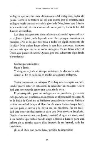 Este es un libro que habla de algo más que milagros. Es un libro sobre el único que puede hacer milagros. Batterson advierte a los lectores, "No busque únicamente milagros, Busque a Jesús. Y si buscas a Jesús, los milagros te encontrarán."