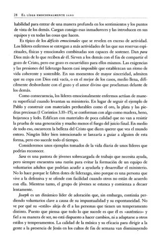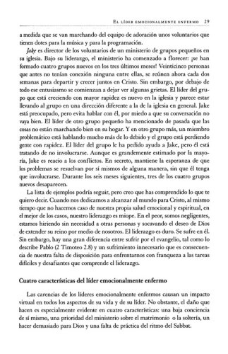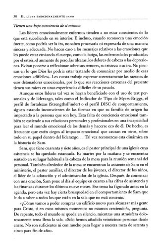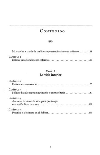· Temática de liderazgo y salud emocional por un experto en la materia (Peter Scazzero). Anécdotas personales, diagramas, cuestionarios, ilustraciones.Notas y lecturas recomendadas para ampliar el conocimiento en el tema.Citas Bíblicas: la Reina Valera 1960 (RVR1960), la Nueva Versión Internacional (NVI).