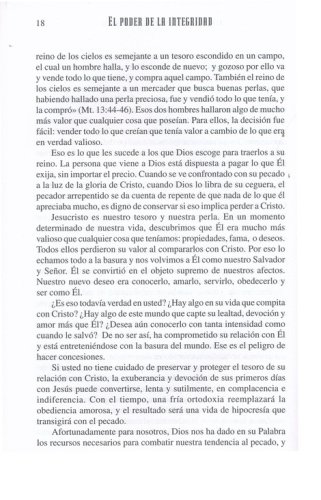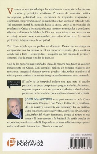 El famoso pastor y maestro MacArthur, nos presenta una novedad que ya ha cambiado vidas de lectores en los Estados Unidos. Ser integros es uno de los principios cristianos que menos se respetan. Todos hemos sido un poco "menos integros" en algun acuerdo, negocio, pago de impuestos, etc. MacArthur nos recuerda lo que la Palabra de Dios dice al respecto, e insta al lector a comenzar una vida de integridad para la gloria de Dios.