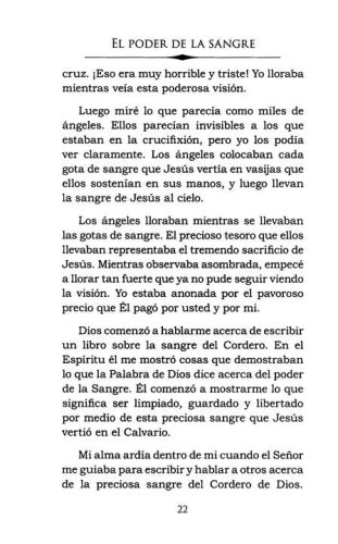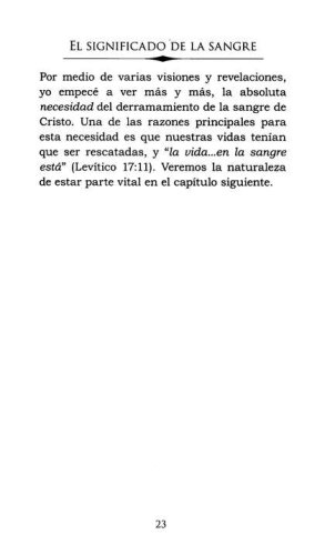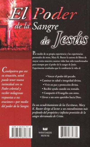 Por medio de su propia experiencia y las experiencias personales de otros, Mary K. Baxter la autora de libros de mayor venta muestra cuantas vidas han sido transformadas para siempre por el poder de la sangre de Jesus. Experimente resultados que le cambiaran la vida al:"Vencer el poder del pecado."Caminar en salud e integridad divina."Vivir en paz y proteccion divina."Recibir ayuda cuando sea tentado."Compartir el Evangelio con otros."Llevar a sus seres queridos hacia Dios.En un escudri?amiento de las Escrituras, Mary K. Baxter dirige al lector a un entendimiento mas profundo del proposito e infinita provision de la sangre derramada de Cristo.