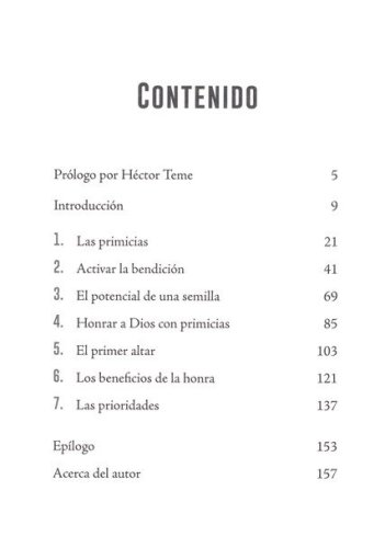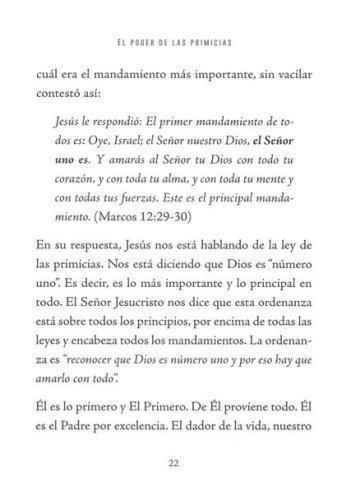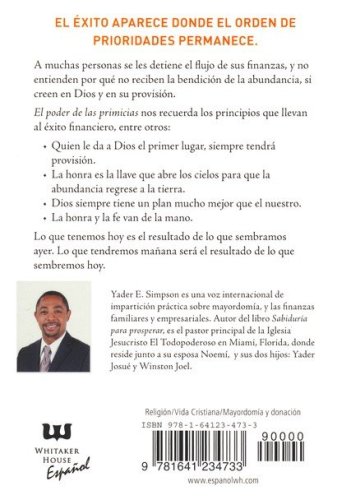 La bendición comienza cuando honramos a Dios con las primicias porque esta acción significa que Dios es lo primero en nuestras vidas. Yader Simpson, con su don de revelación para la mayordomía, va descubriendo ante el lector El poder de las primicias, y cómo seguir ese orden lleva al ser humano al éxito financiero. Aprenderás, entre muchas verdades, que: "el éxito aparece donde el orden de prioridades permanece; quien ajusta sus prioridades y las organiza de acuerdo al corazón de Dios, siempre tendrá provisión; y cuando Dios nos llama a arriesgarlo todo para ponerlo a Él en primer lugar, es porque tiene un plan mucho mejor que el que nosotros tenemos".
