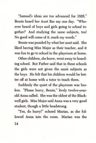 The life story of Elizabeth Blackwell, one of the first woman doctors in the Unites States, who worked in England and America to open the field of medicine to women, is told in easy-to-read language.