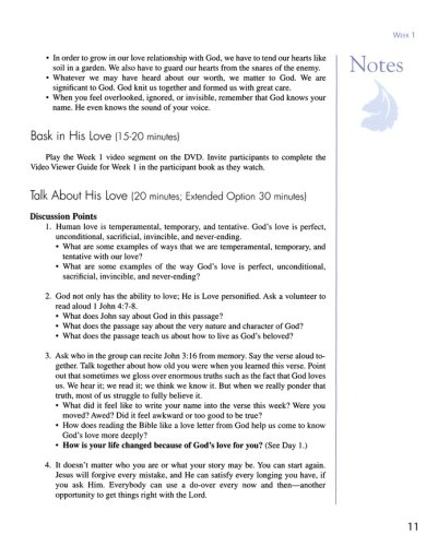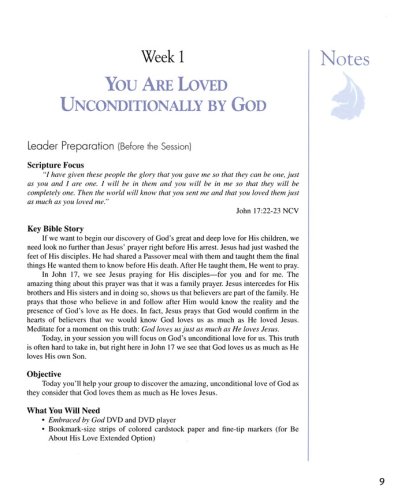 Every woman longs to know that she is loved, accepted, and valued. Yet many women struggle to understand and accept just how much God really loves them. Drawing upon her own personal journey to understand how very much God loves her not as a singer or teacher but as His beloved daughter, contemporary gospel singer Babbie Mason equips women to accept God's unfailing love as they understand and claim seven biblical promises. 1. You are loved unconditionally by God. 2. You are beautiful to God. 3. You are never alone. 4. You have everything you need in God. 5. You have a God-given purpose. 6. You can accomplish great things in God’s name. 7. You are equipped with unique gifts and talents. A final session explores how believing and living out these promises will deepen and enrich not only a woman’s personal relationship with God but also her relationships with others. Great for small groups or classes. The Leader Guide contains 8 session outlines plus leader helps. Each outline includes instructions for viewing a DVD teaching segment and discussing and responding to the promise of the week. Other available components, each available separately, include a Participant Workbook with five days of lessons per week, DVD with six 14-16 minute sessions (with closed captioning), and boxed Leader Kit containing one of each component plus a music CD.