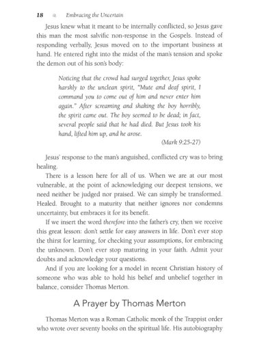 Embracing the Uncertain invites readers this Lent to engage and wrestle with life’s uncertainties, not ignore them. The first six chapters focus on six post-Transfiguration, pre-Passion stories in the Gospels. Each of these stories are signposts in the gospel narrative, pointing down at a world filled with uncertainty, but pointing us forward to a cross that can show us how to follow Jesus with courage, hope, and obedience. Includes discussion questions that can be used in small-group Bible study session or for personal growth.