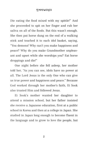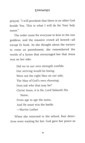 The stories in Empowered are about faithful women, but even more about a steadfast God. Girls don't have to do the things these women have done to live a life of purpose; by making a direct connection to their daily lives, readers will have a bigger and a more personal view of their Father and His love for them. The same God who was faithful to give Corrie ten Boom the love she needed to forgive her prison guard can help girls love the unlovable bullies at school. The love for Jesus that compelled Sophie Scholl to sacrifice her life for a higher cause can empower a young girl who sees injustice in the world around her. In a culture where the youth see value in terms of Instagram likes and viral videos, the life of Pandita Ramabai will show the value of humble worship.